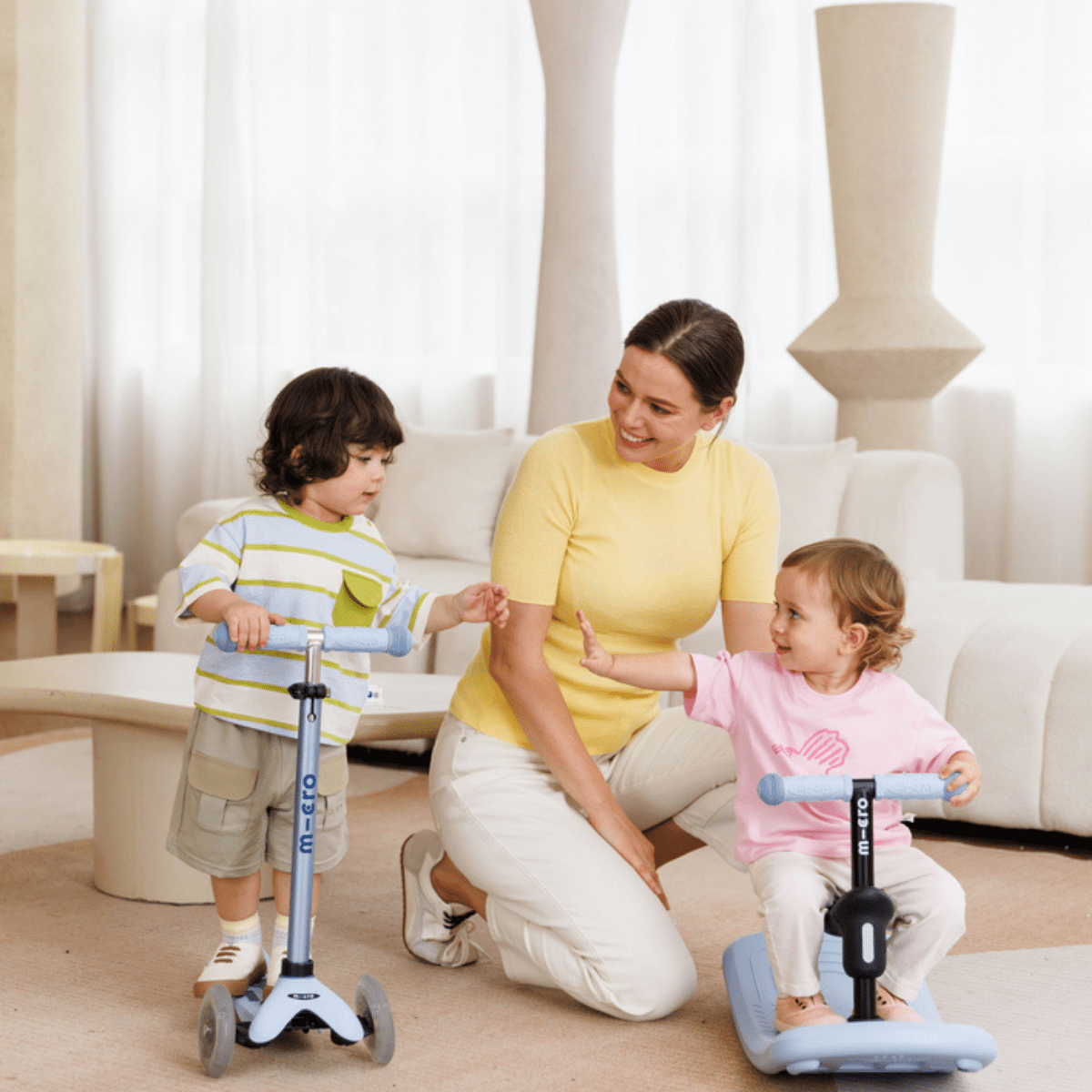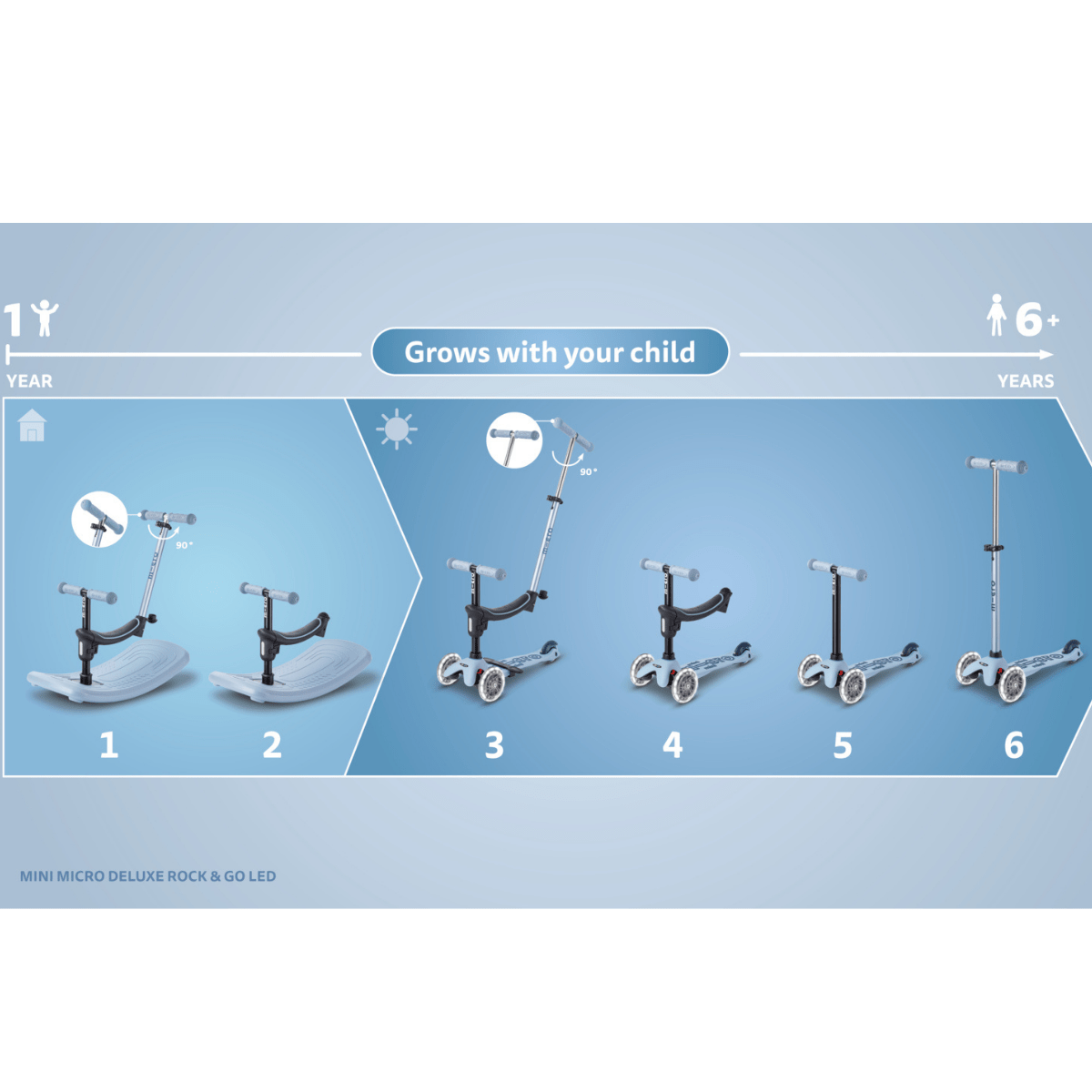 La Mini2Grow LED Magique commence comme une trottinette porteur pour tout-petits, puis se transforme en trottinette Mini LED 3 roues lorsque votre enfant devient un "grand".